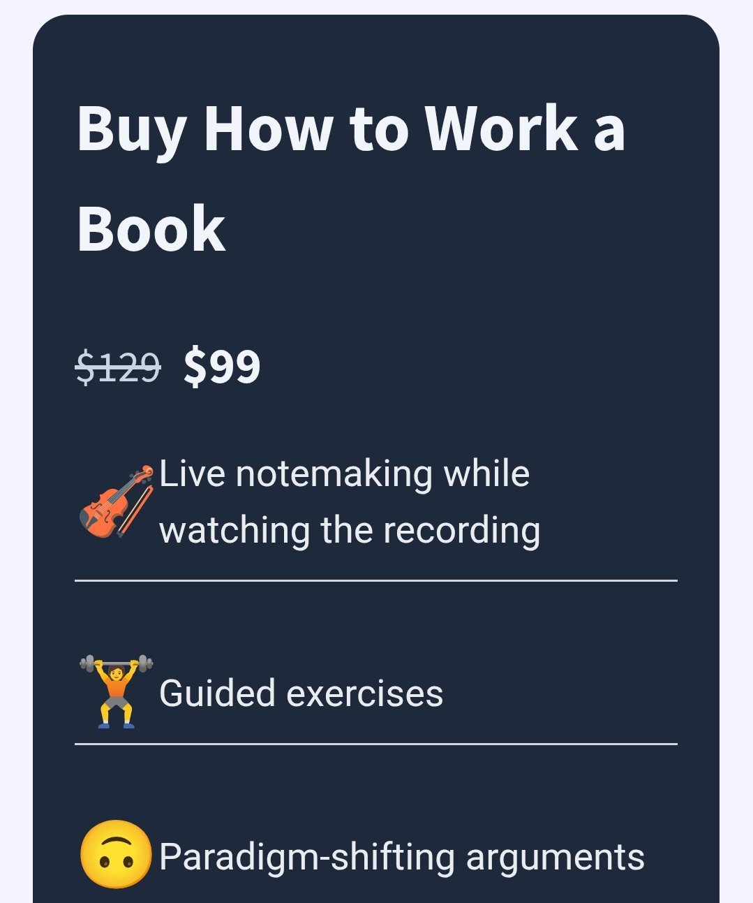 Whether you’re a student, writer, professional, or lifelong learner, How to Work a Book empowers you to turn reading into a skill that fuels your creativity, decision-making, and problem-solving. By the end of the course, you’ll have a repeatable process that transforms every book you read into lasting, actionable wisdom.